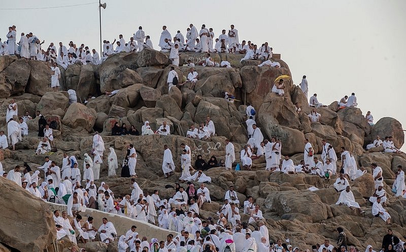 The picture on the left shows Mount’ Arafah on the plain of Arafat. Standing at Arafat is the fundamental requirement of Hajj and pilgrims come here on the 9th Dhul Hijjah (second day of Hajj).